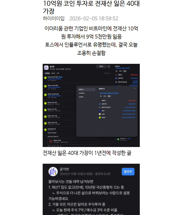 10억원 코인 투자로 전재산 잃은 40대 가장