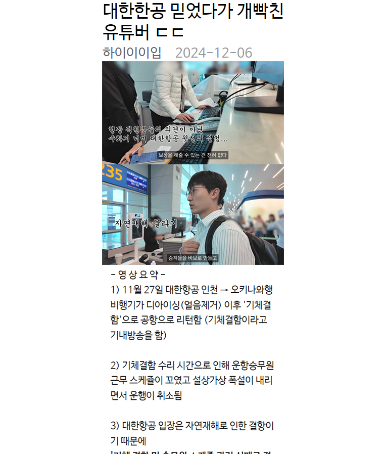 대한한공 믿었다가 개빡친 유튜버 ㄷㄷ