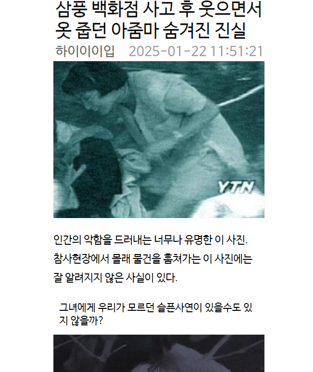 삼풍 백화점 사고 후 웃으면서 옷 줍던 아줌마 숨겨진 진실
