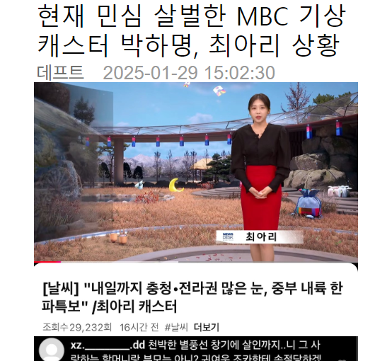 ☑️ 현재 민심 살벌한 MBC 기상캐스터 박하명, 최아리 상황