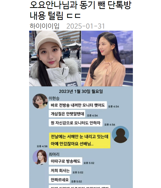 오요안나님과 동기 뺀 단톡방 내용 털림 ㄷㄷ